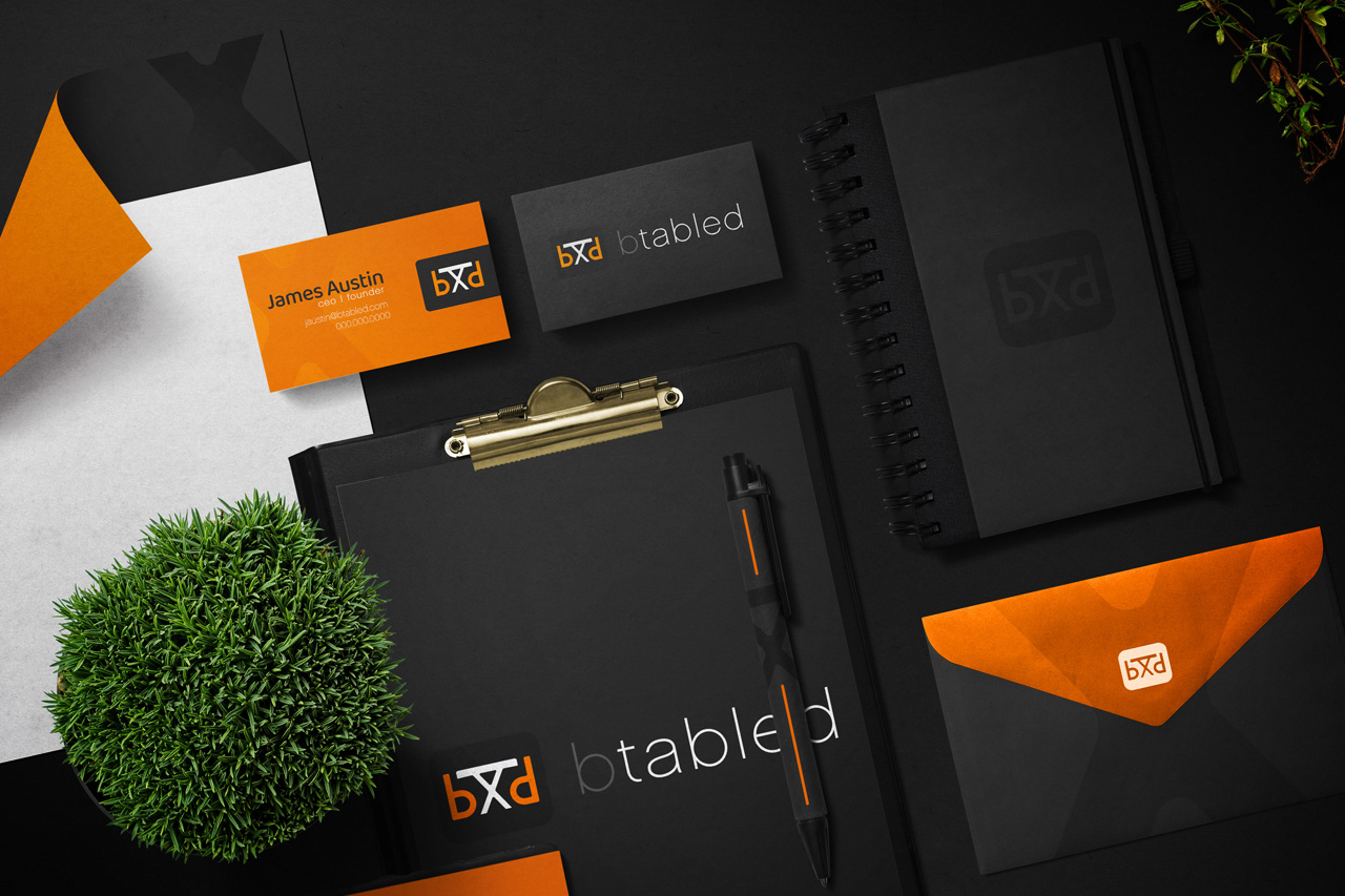 Branding material and logo creation for a restaurant reservation service, which was to become an app. The logo was created using the letters "b,t, and d" as the inspiration, as an abbreviation of the word-mark/app name "btabled."