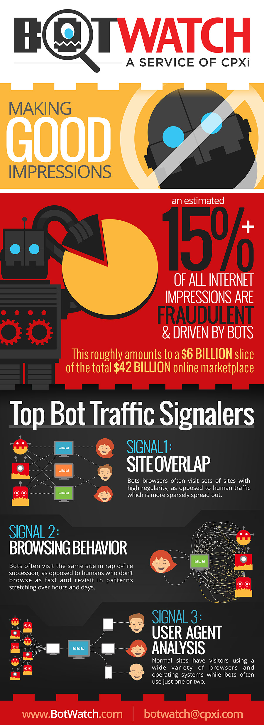 An infographic created for a creative agency in the digital ad space to promote/create awareness of their online bot fighting software.