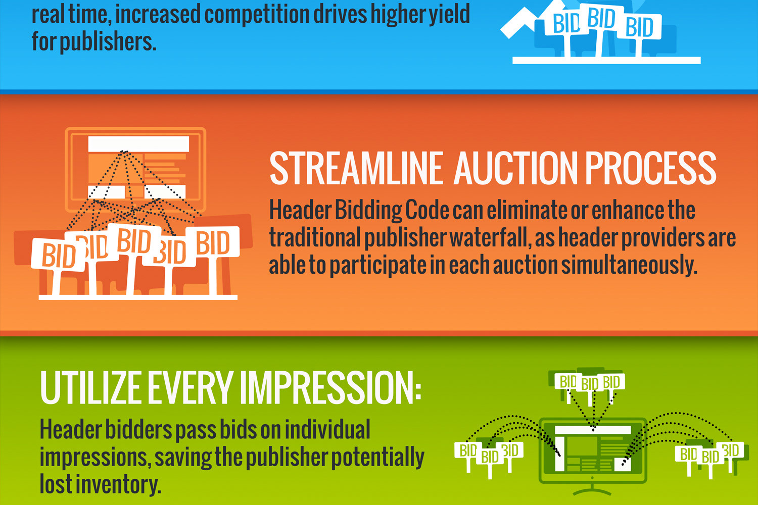 This infographic on how header bidding was illustrated/created for a media and technology company focused on solving programmatic business challenges for both publishers and advertisers.