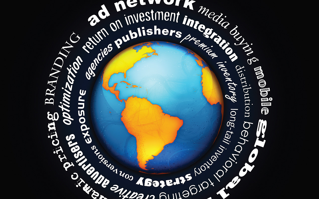 Tri-fold print as corporate collateral, to be handed out at trade shows and such. No stock used, all illustrated, laid-out and designed in-house.