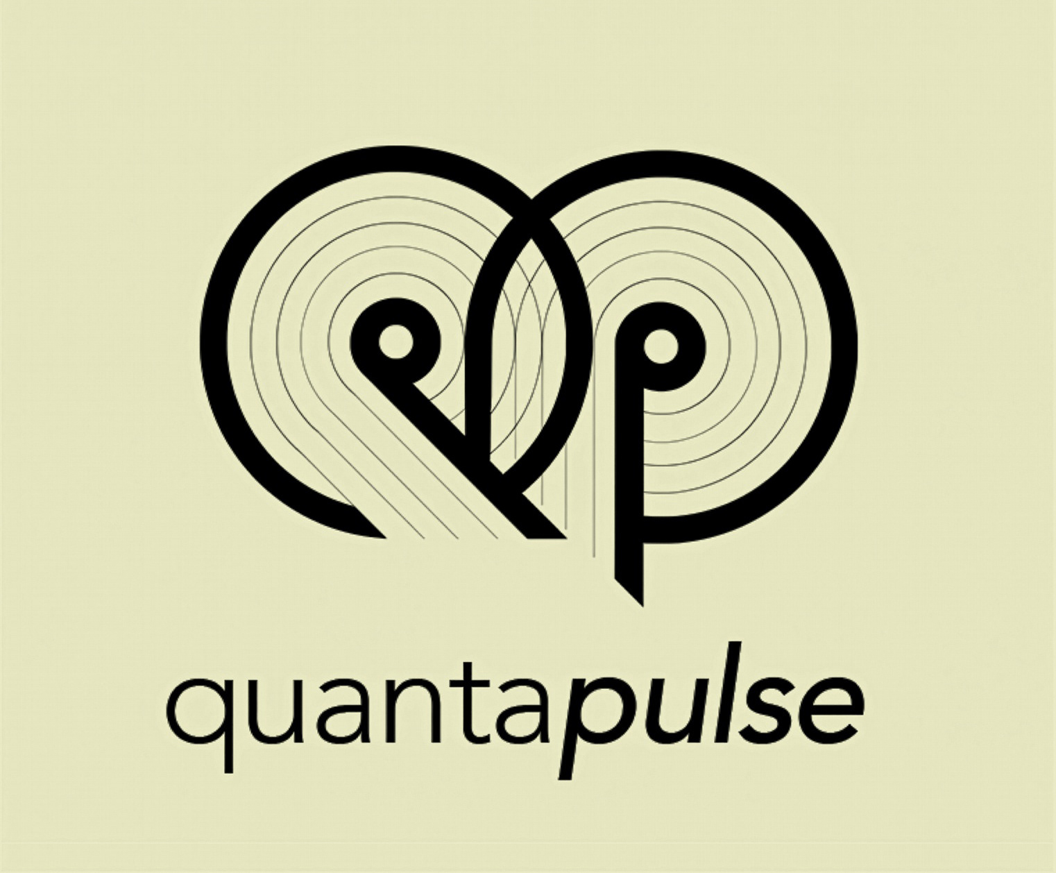The QuantaPulse logo was designed with a focus on rhythm, symmetry, and bold geometry to reflect the precision and innovation of a modern tech platform. The mark features two interlocked forms that abstractly represent the letters "Q" and "P", constructed from a series of concentric lines converging into clean, sharp terminals. This overlapping structure suggests connectivity, signal flow, and layered systems... core ideas in technology and data platforms. The thick line work anchors the design with authority, while the inner line repetition creates a visual pulse, reinforcing the idea of dynamic movement and continuous transmission. The logotype balances the mark with a clean, rounded typeface, with a subtle emphasis on "pulse" to reinforce energy and forward momentum.