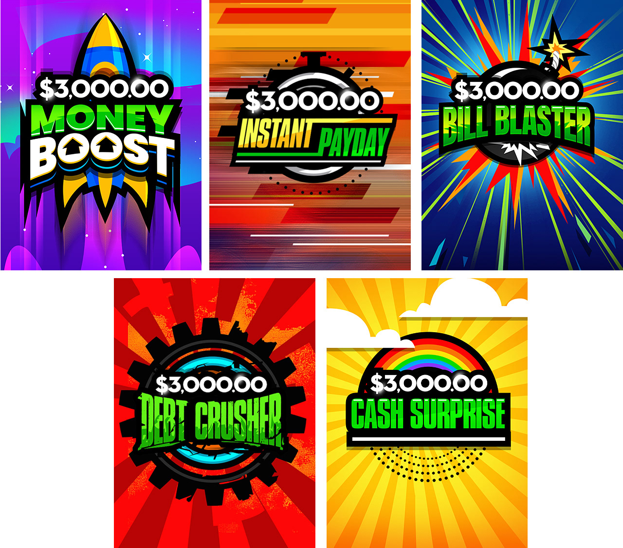 These are online gameplay cards. I illustrated the individual logo/branding for each card, the icons, as well as the themes and overall look across the board.